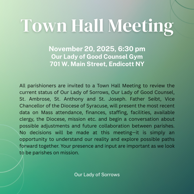 Our Lady of Sorrows has made Online Giving available for our weekly offerings, as well as other parish collections. Donating is simple, safe, and secure and take less than five minutes.