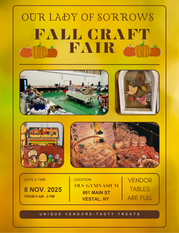 WELCOME! Christ welcomed all who were searching for truth, peace and joy! We, the Roman Catholic faith community of Our Lady of Sorrows welcomes all people to come and find truth and peace within our walls. A joy filled community based on Sacred Scripture, Tradition, and the Sacraments seeks to provide an inviting and spiritually fulfilling faith journey for all who seek a deeper, truth filled relationship with the risen Christ. We sincerely hope to offer hospitality and friendship to everyone in the name of Christ our Savior. Please come join us!